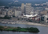 | | Der PC-12 vor der Skyline von Memphis. Die Stadt am Mississippi, in der Elvis Presley lebte, sang und starb, ist wegen des FedEx-Centers eine Hochburg der Fliegerei. Der PC-12 frühlt sich hier besonders wohl... |