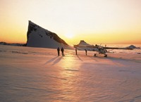 | | Grise Fiord. Landen gegen den Berg, starten vom Berg weg. Es gibt keine andere Wahl. Grise Fiord ist die nördlichste Gemeinde in Kanada auf 76,5 ° nördlicher Breite! |